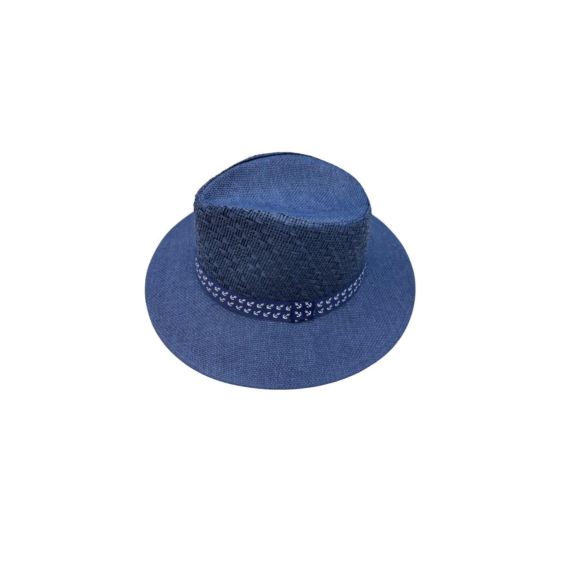 IGO2507373 Anchor Pattern Webbing Designed Woven Fedora Hat
