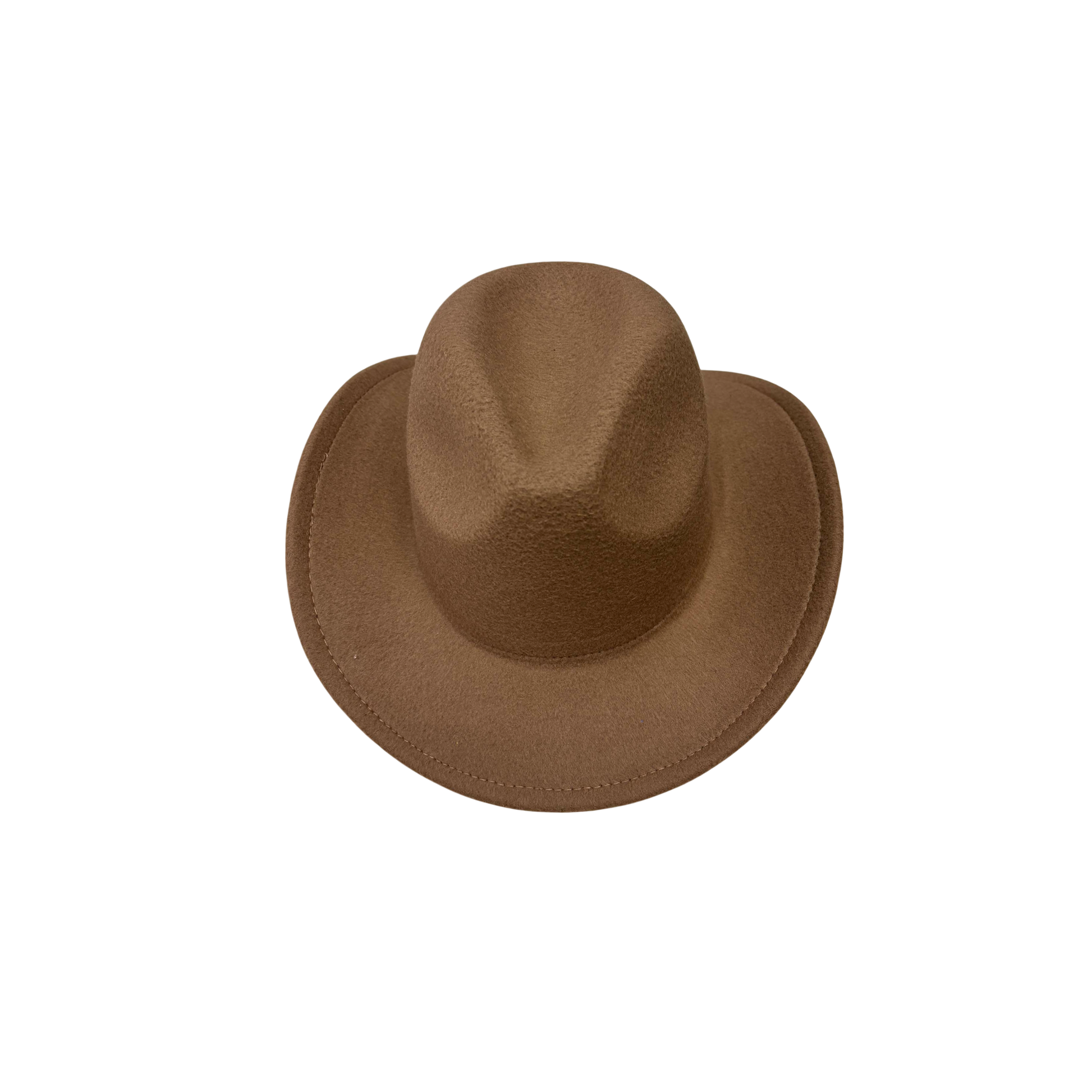 This is a cowboy hat - styled fedora. Made from 100% polyester, it’s a one - size - fits - most design. It features a classic cowboy hat silhouette with a tall, pinched crown and a wide, curved brim, presenting a stylish and versatile look suitable for various outfits and occasions.