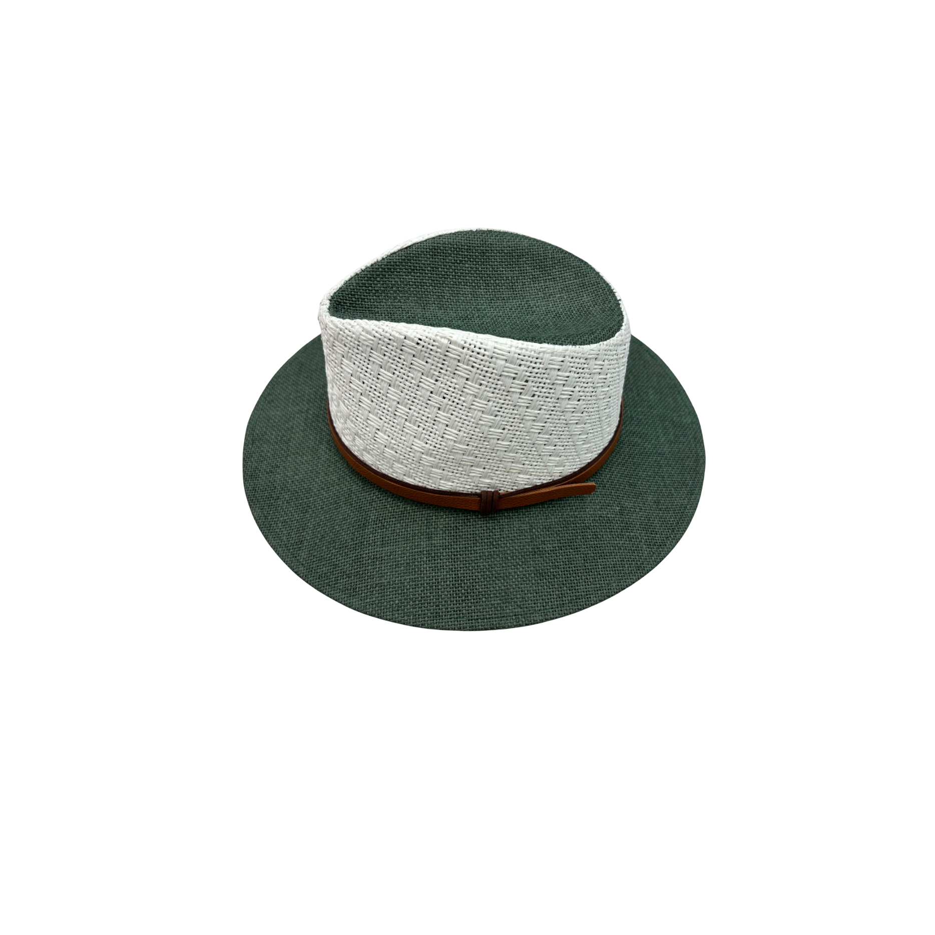 IGO2507378 Color-Block Design Leather Buckle Straw Fedora Hat