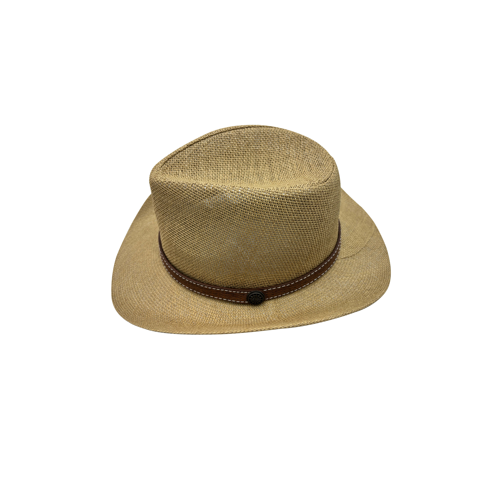 This one - size (fitting head circumferences 56 - 62cm) hat is meticulously crafted from 100% paper, presenting a woven texture. Its classic outback - style silhouette, with a moderately high crown and wide, slightly downturned brim, offers both style and sun protection. A brown leather - like band, adorned with stitching details and a small button - like embellishment, encircles the base of the crown, adding a touch of rustic charm. Lightweight and breathable, it's an ideal accessory for outdoor adventures, casual strolls, or any sunny - day activity, blending practicality with a distinct, laid - back aesthetic.