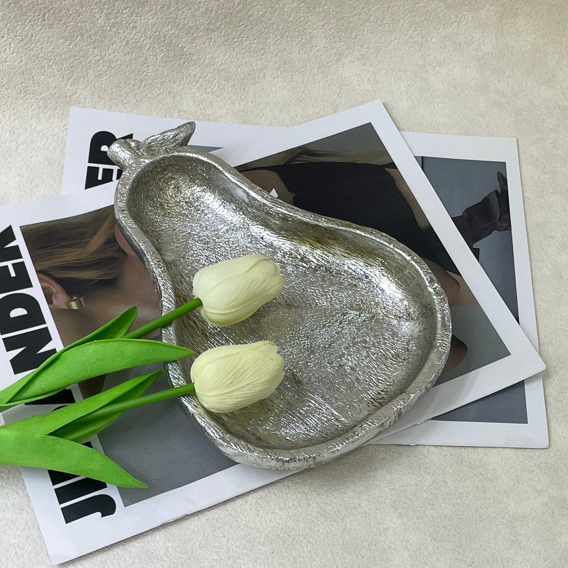 Crafted in gold - toned (warm metallic finish) and silver - toned (cool metallic sheen) resin, these hand - textured trays feature a delicate leaf - topped stem. Blending sculptural charm and functional design, they’re perfect for displaying trinkets, candles, or as standalone decor.