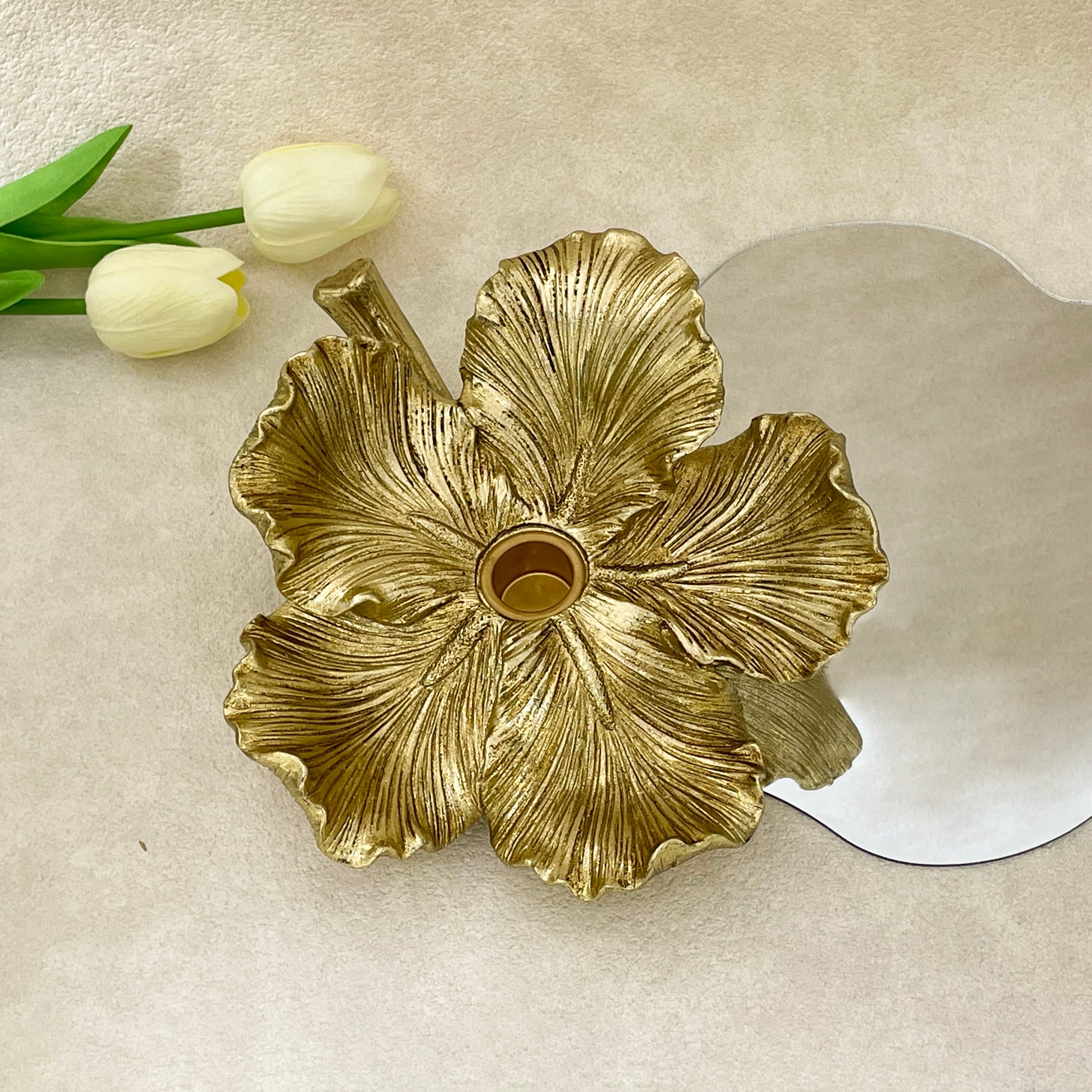 The holder captures the layered beauty of a blooming five - petal flower, with hand - finished vein patterns echoing nature’s artistry.