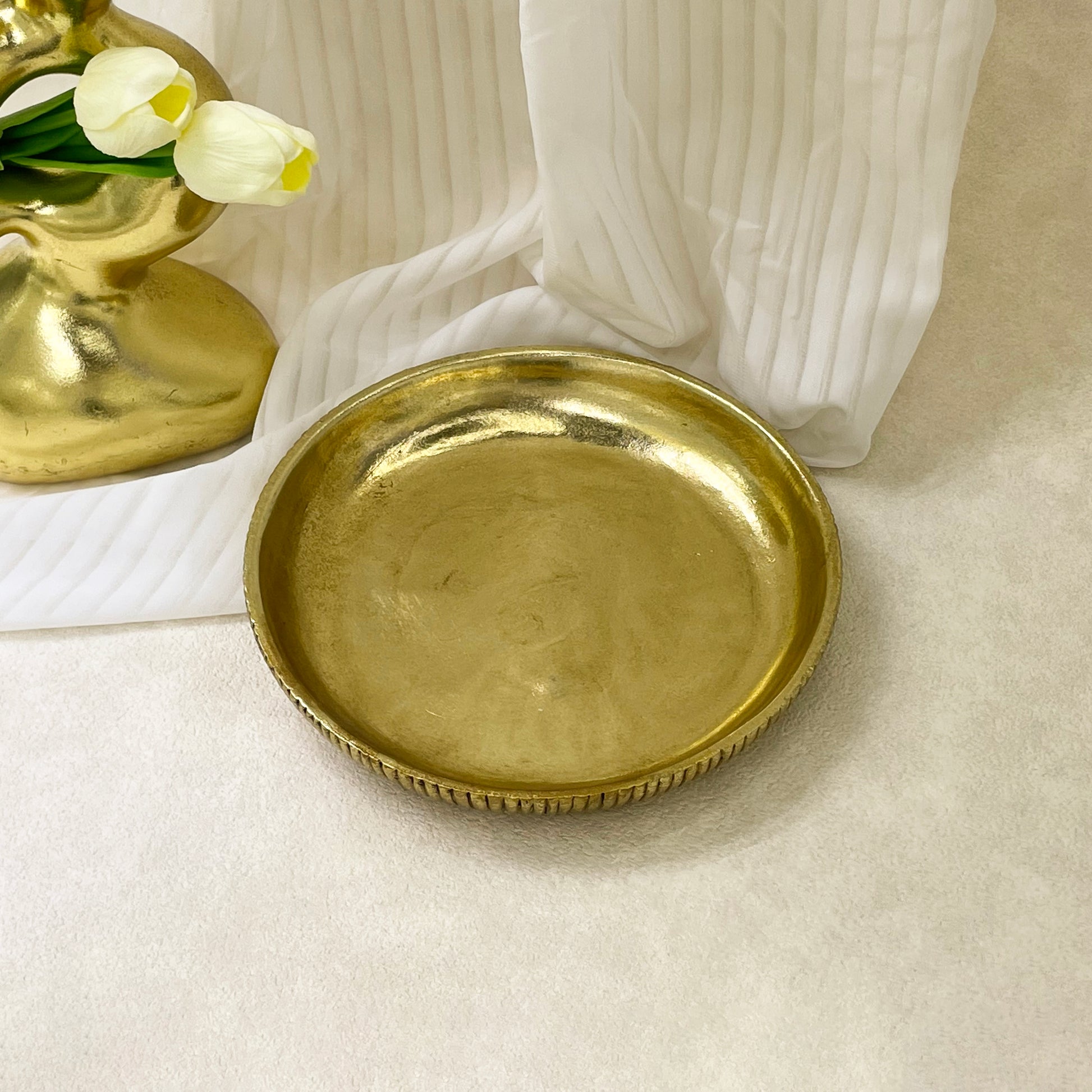 A minimalist - luxe accent from the Artistic Home Collection. Crafted with a smooth metallic - gold finish and textured ribbed edges, it blends functional elegance and sculptural charm, ideal for curating trinkets or as a standalone decor piece.